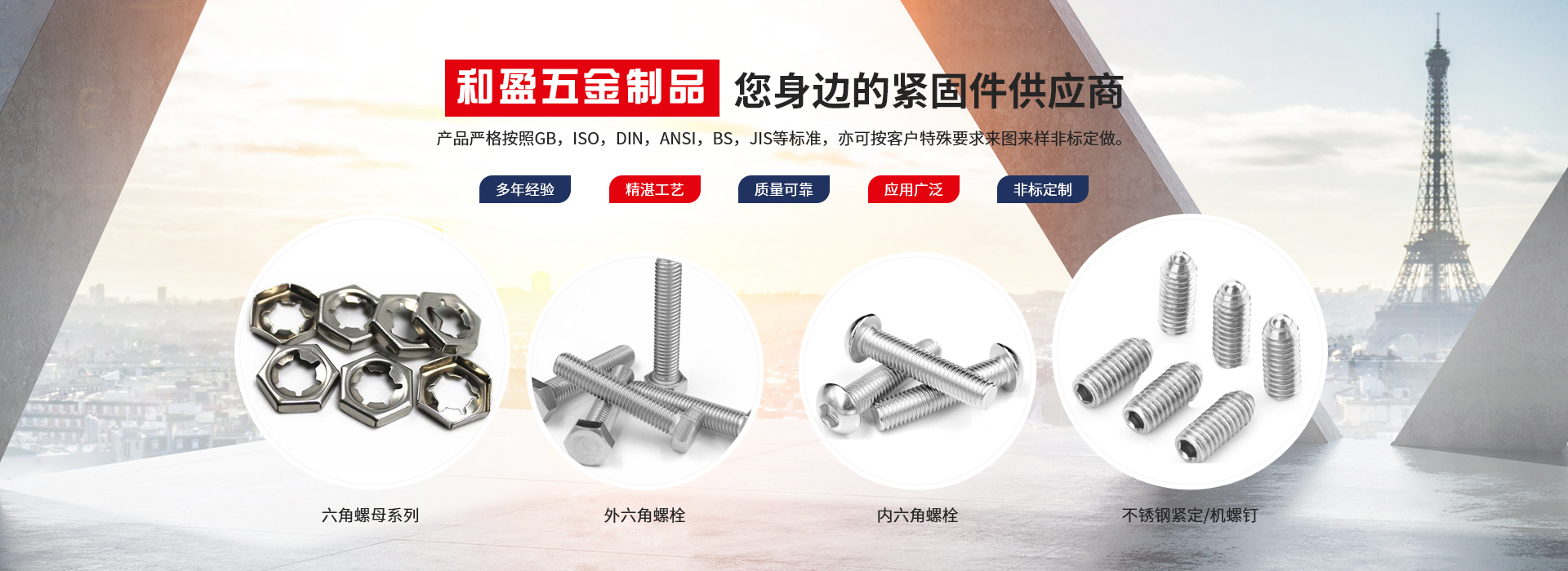興化市和盈五金制品有限公司創(chuàng)建于2010年,坐落在全國不銹鋼名鎮(zhèn)———江蘇戴南。本公司集當(dāng)?shù)夭讳P鋼優(yōu)勢和全國銷售網(wǎng)點(diǎn),以不銹鋼緊固件產(chǎn)品為主體的企業(yè)。我們將始終如一的堅(jiān)持以客戶為中心,堅(jiān)持以品質(zhì)取勝的發(fā)展戰(zhàn)略,依靠科學(xué)技術(shù)不斷創(chuàng)新。秉承這種精神,我們一起和諧合作,共贏未來。產(chǎn)品嚴(yán)格按照GB,ISO,DIN,ANSI,BS,JIS等標(biāo)準(zhǔn),亦可按客戶特殊要求來圖來樣非標(biāo)定做。產(chǎn)品廣泛應(yīng)用......